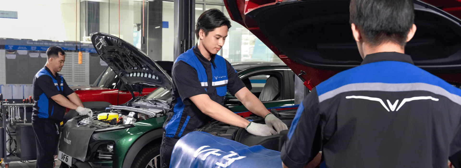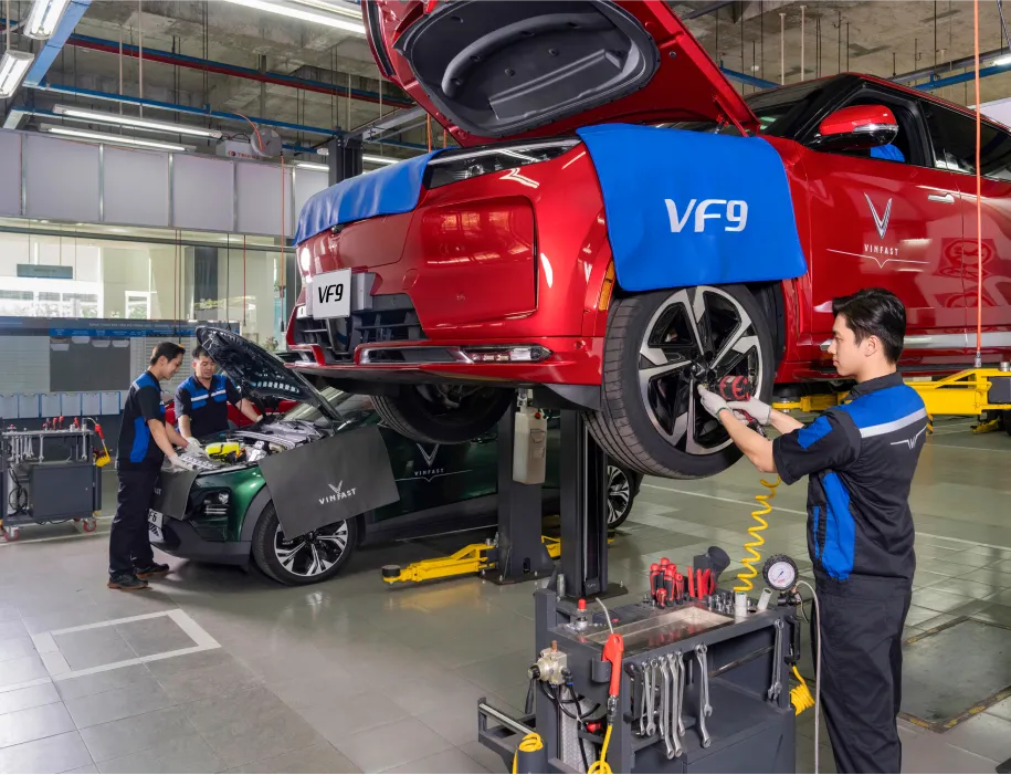 VinFast cung cấp dịch vụ sửa chữa chuyên nghiệp với thiết bị hiện đại và đội ngũ kỹ thuật viên được đào tạo bài bản: