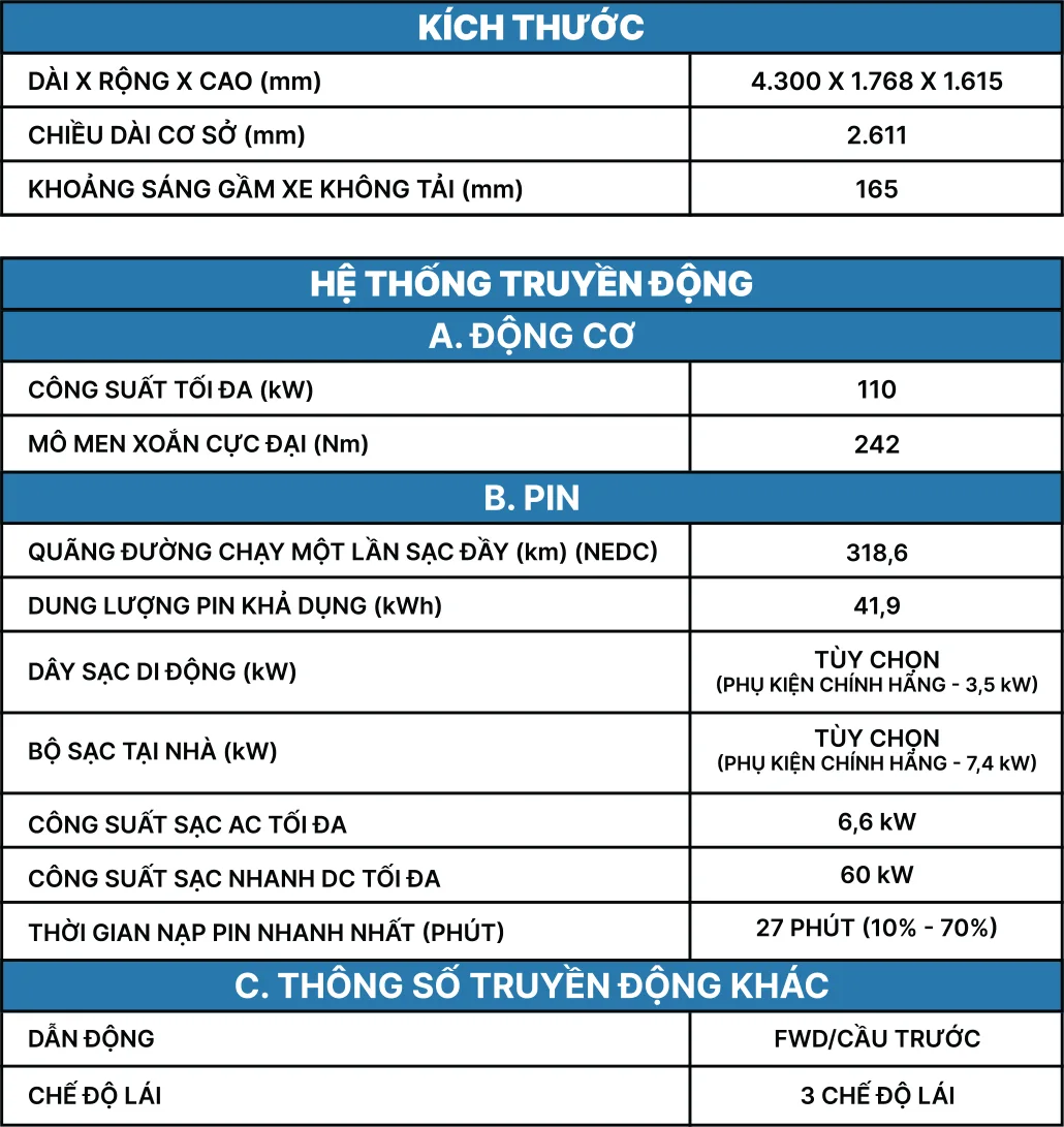 - 318,6 km/lần sạc đầy