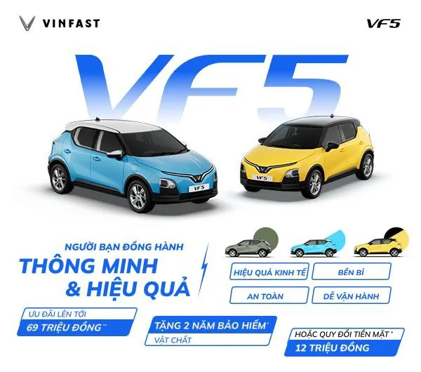 Tặng chủ sở hữu ưu đãi 02 năm bảo hiểm vật chất tới 31/10/2025, hoặc quy đổi thành tiền mặt lên tới 12 triệu đồng, áp dụng cho các xe VF 3 và VF 5 xuất hoá đơn từ 1/11 - 30/11/2025*